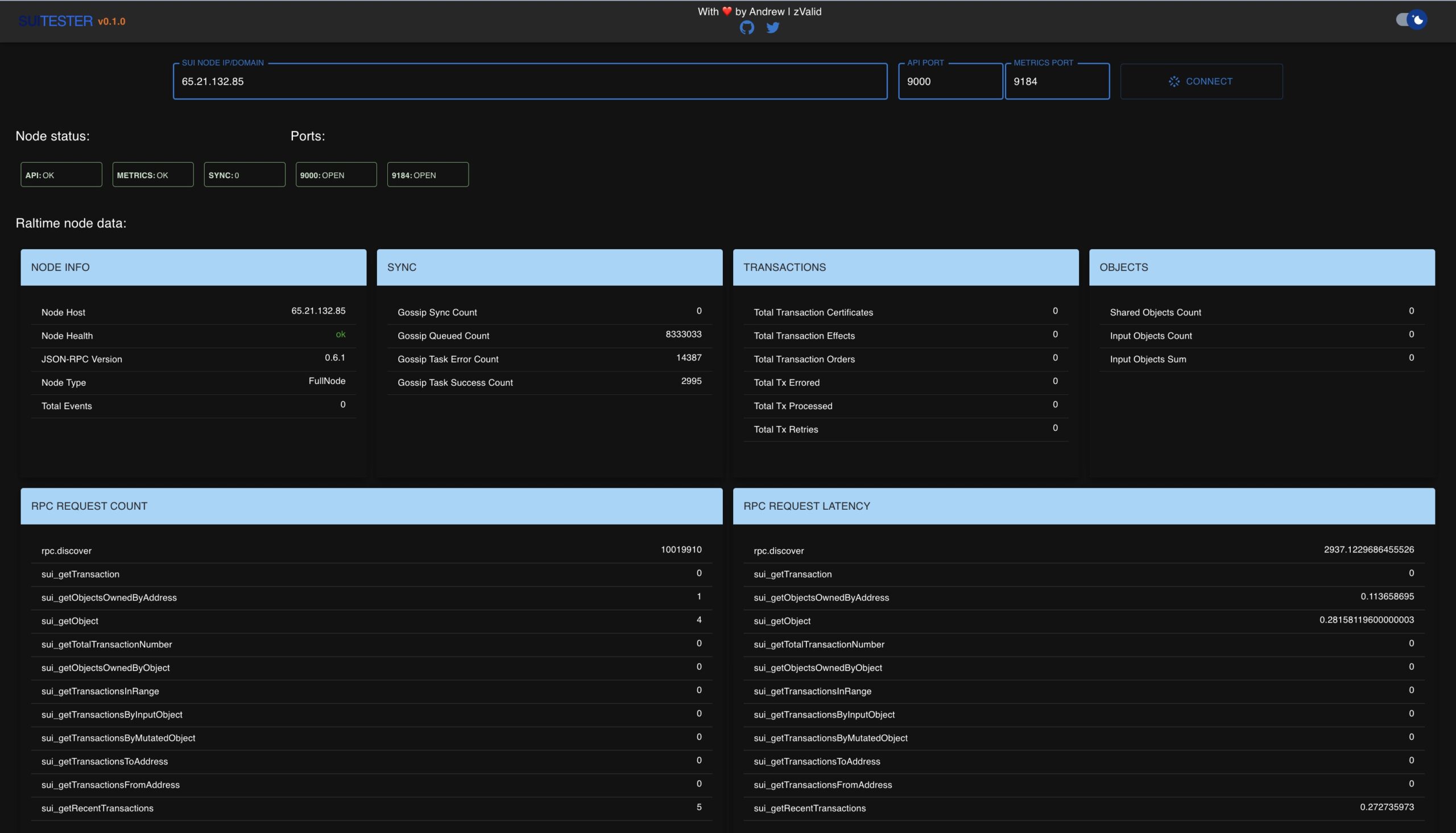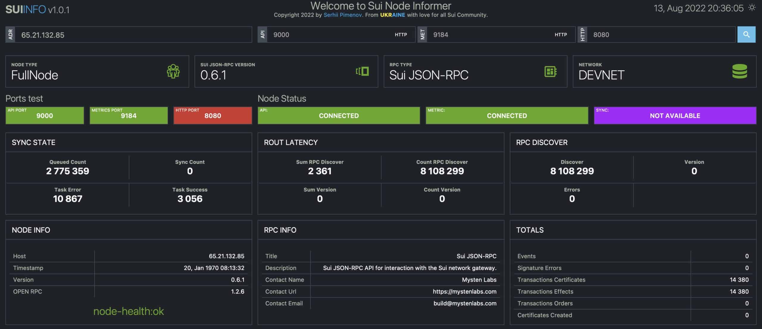 wget -qO- -t 1 -T 5 --header 'Content-Type: application/json' --post-data '{ "jsonrpc":"2.0", "id":1, "method":"sui_getRecentTransactions", "params":[5] }' "http://127.0.0.1:9000/" | jq In addition, you can find yourself in the checker by entering the server IP. Just enter IP of your server, should look like this: